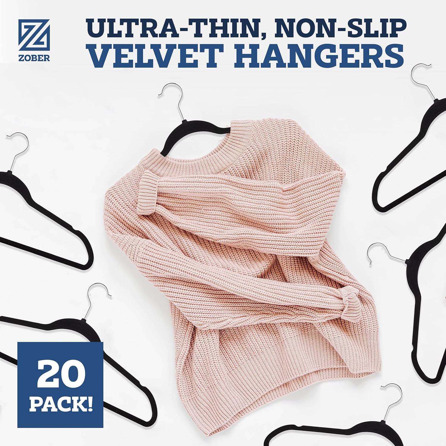 DURABLE SWEATER HANGERS – Featuring smooth, black, non-slip velvet, 360 degree swivel hooks, and notched shoulders, this coat hanger set makes storage simple and stylish