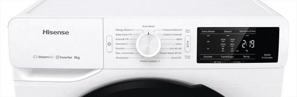 Caratteristiche speciali Centrifuga min (giri/min): 400; Centrifuga regolabile: Sì; Temperatura regolabile: Sì; Stirofacile: Sì; Tipo motore: Inverter; Silence/Super Silent: No; Altre funzioni: Funzione aggiungi indumento (pausa); Vapore; Mix Power System; Altre descrizioni strutturali: Motore: Inverter BPM; Tipo di spina: Schuko. Attenzione: Dimensioni nette non comprensive di attacchi acqua e oblò.